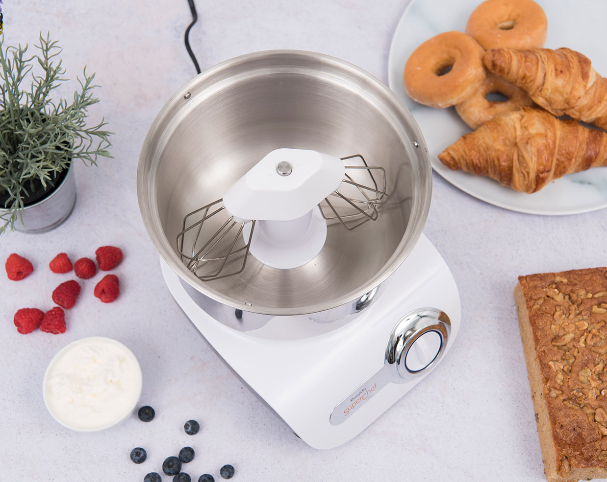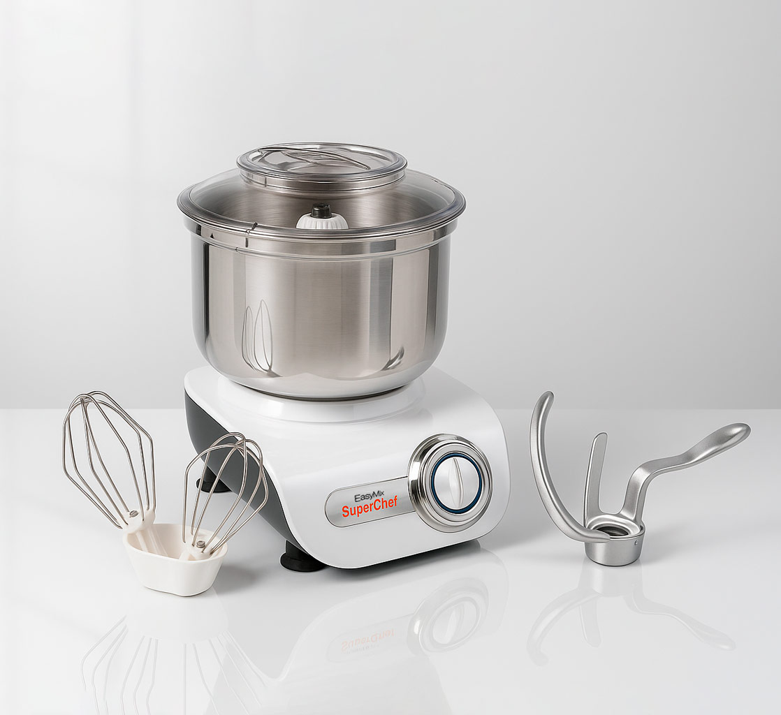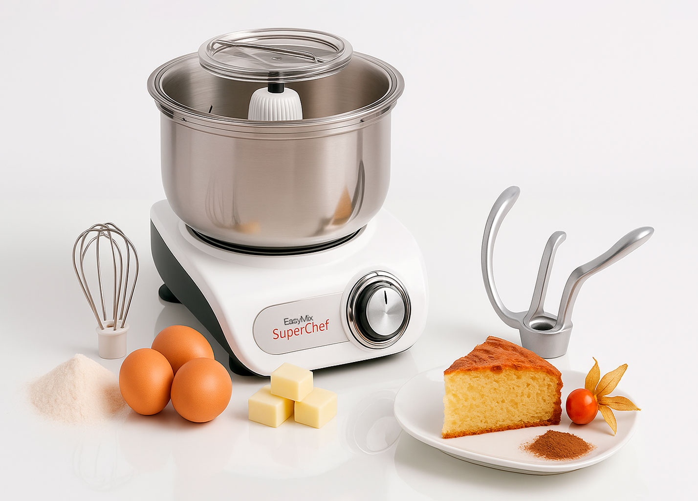 Compacto y más eficiente que las batidoras amadoras tradicionales. 3 Litros de capacidad y 500W de potencia. Diseño con tapa abierta para poder introducir inredientes en cualqueir momento. Más rápido y eficiente. Incluye acceosiors para batir y amasar.