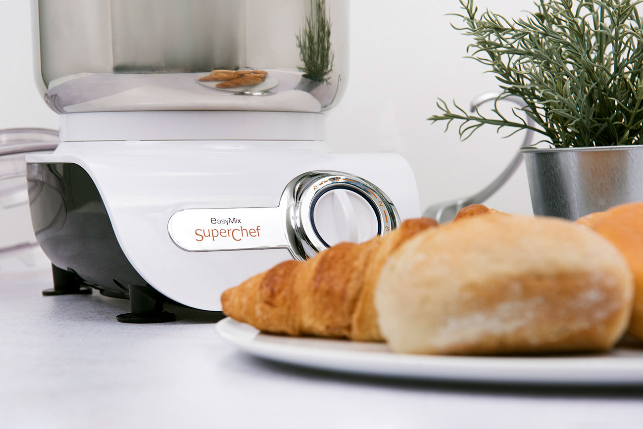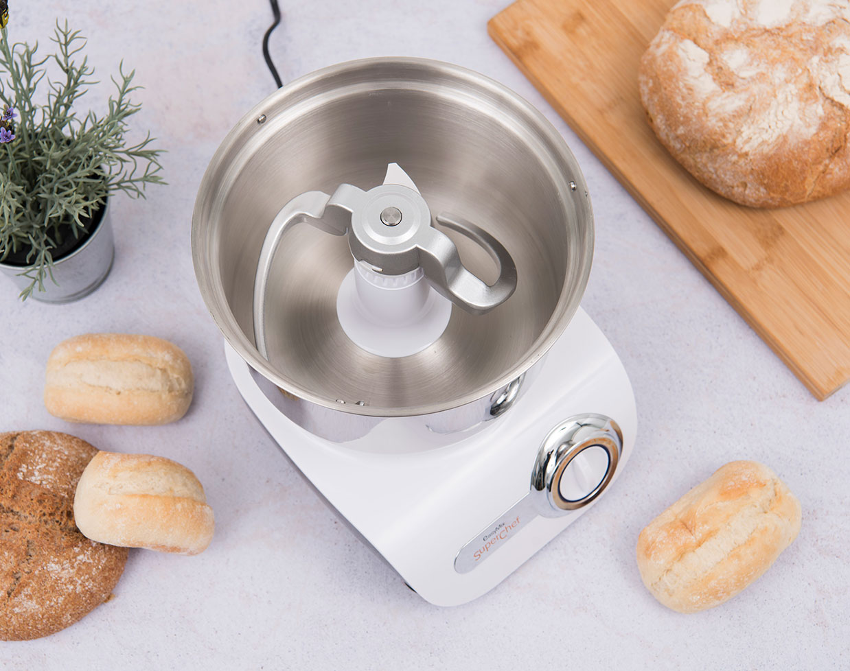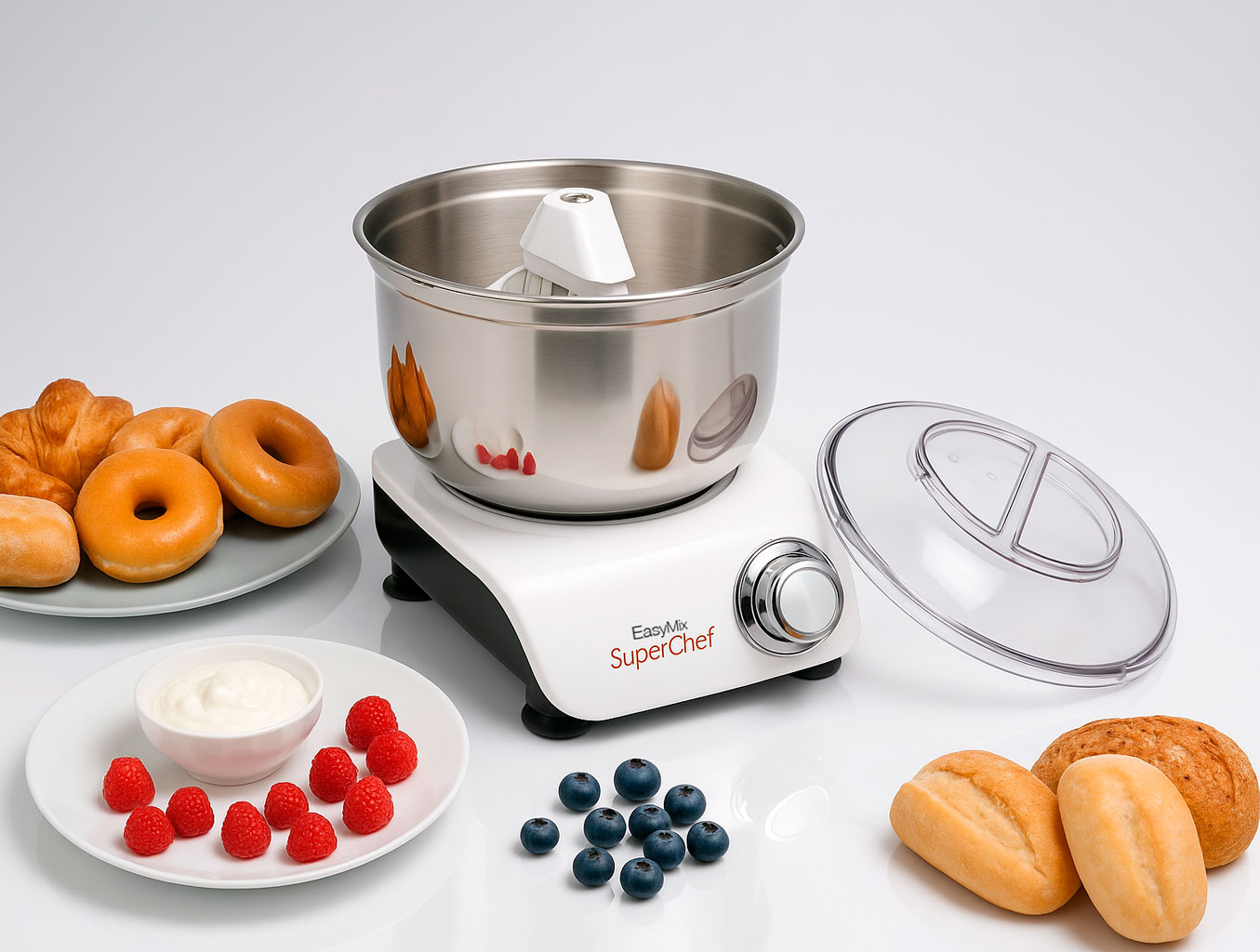 Compacto y más eficiente que las batidoras amadoras tradicionales. 3 Litros de capacidad y 500W de potencia. Diseño con tapa abierta para poder introducir inredientes en cualqueir momento. Más rápido y eficiente. Incluye acceosiors para batir y amasar.
