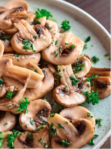 Champiñones salteados con ajo y perejil, sabrosos y aromáticos, ideales para disfrutar como aperitivo o como acompañamiento.