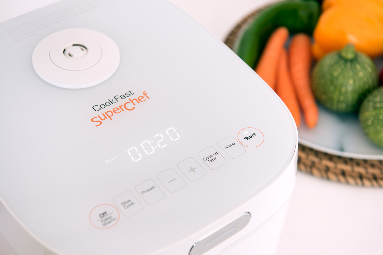 Con tan sólo introducir los ingredientes en crudo y programar a que hora quieres tener la comida preparada, SuperChef cocinará por ti! Podrás programar CookFast hasta con 24 horas de antelación.