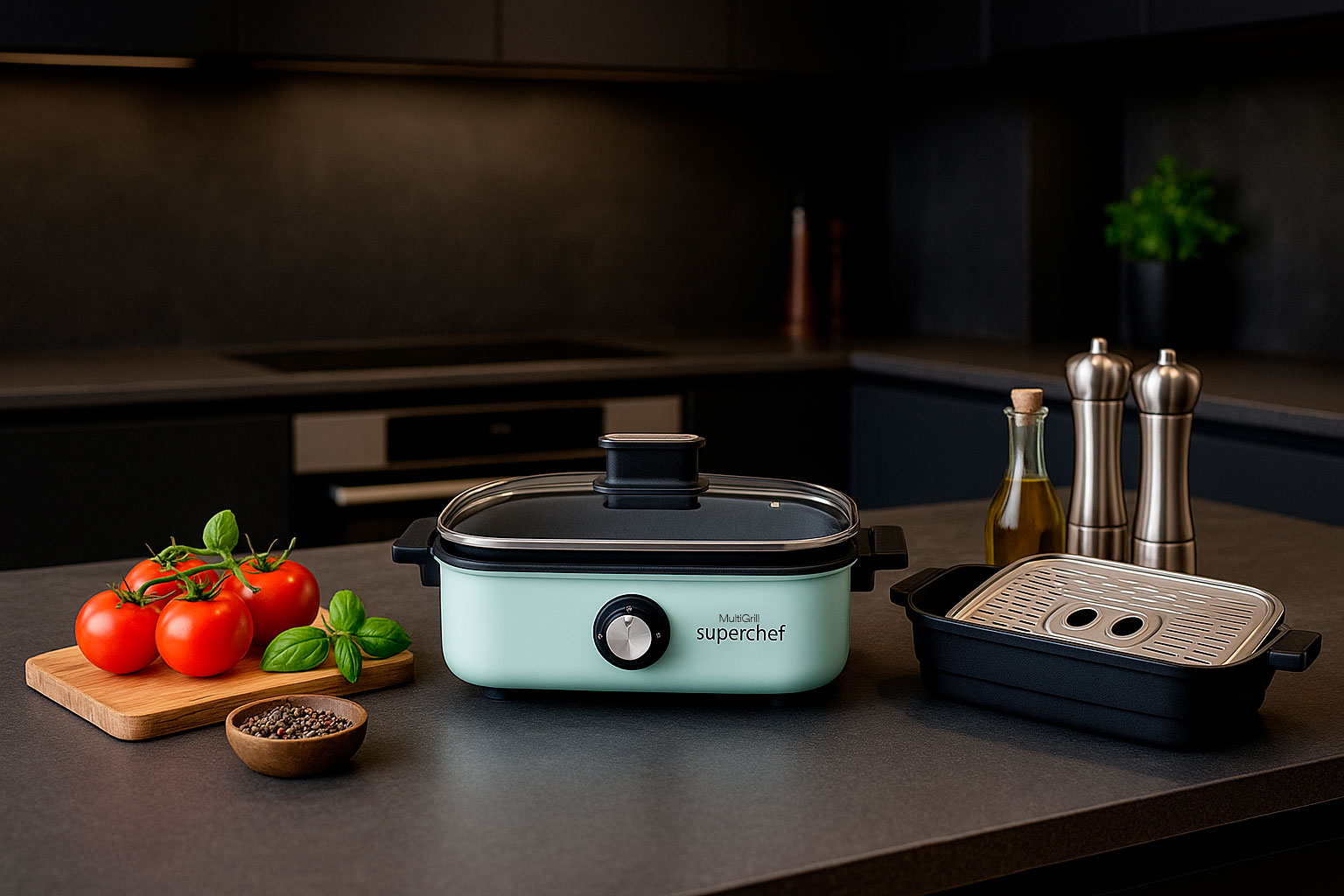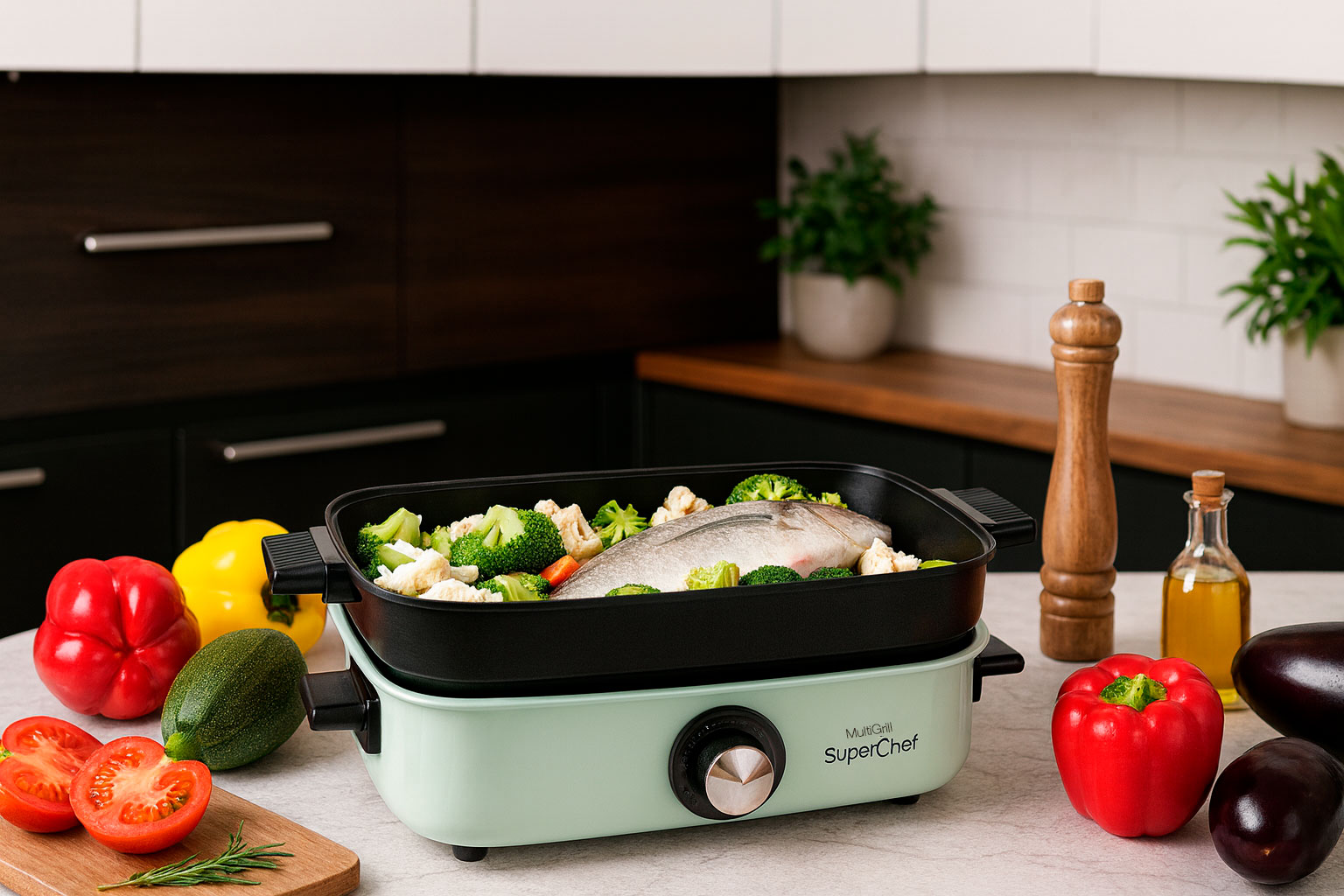 Multi grill 5 en 1, podrá realizar todo tipo de recetas: cocinar al vapor, guisos, arroces, freír, barbacoa, grill, etc.