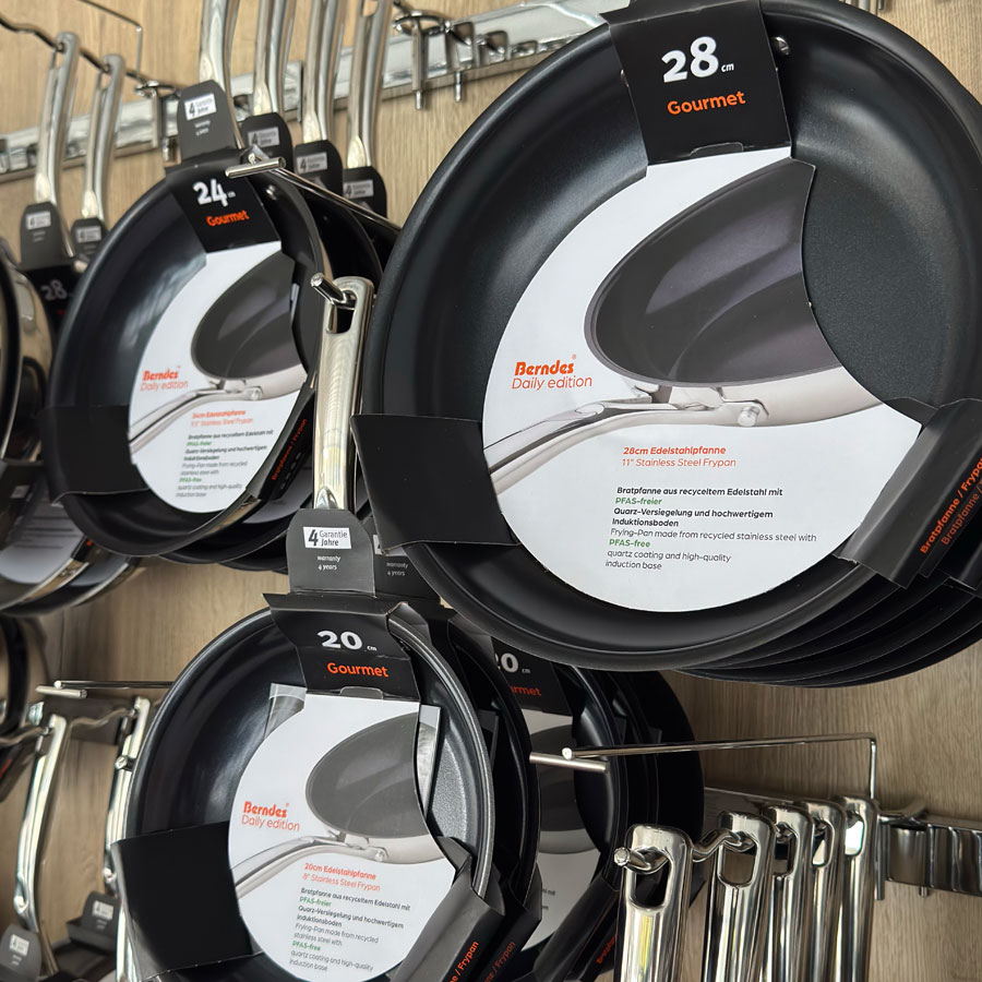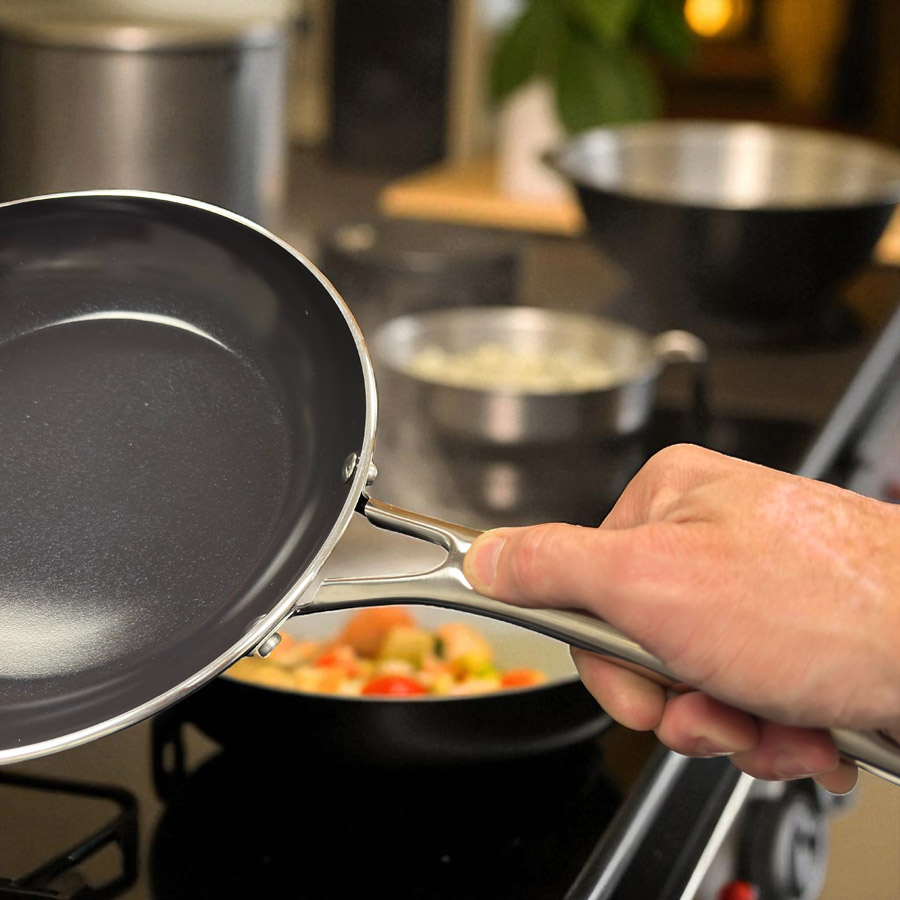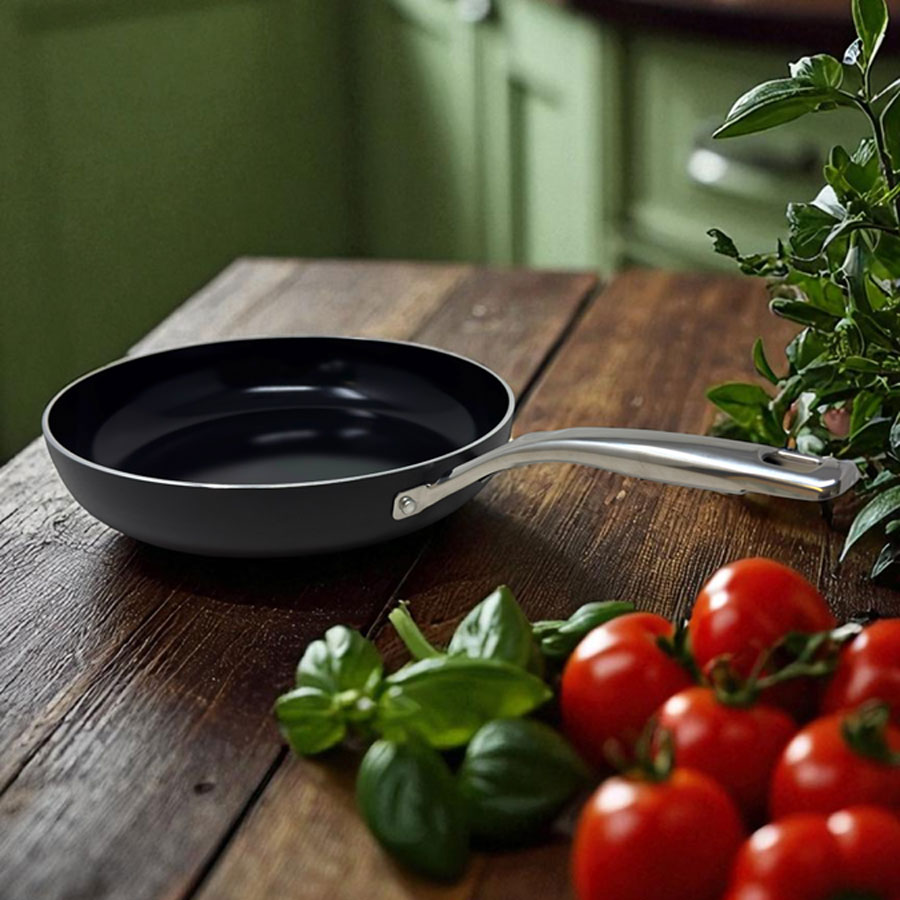 Manejo óptimo, ligero, para freír rápidamente platos sencillos, desde huevos fritos hasta albóndigas, cocina baja en grasas.